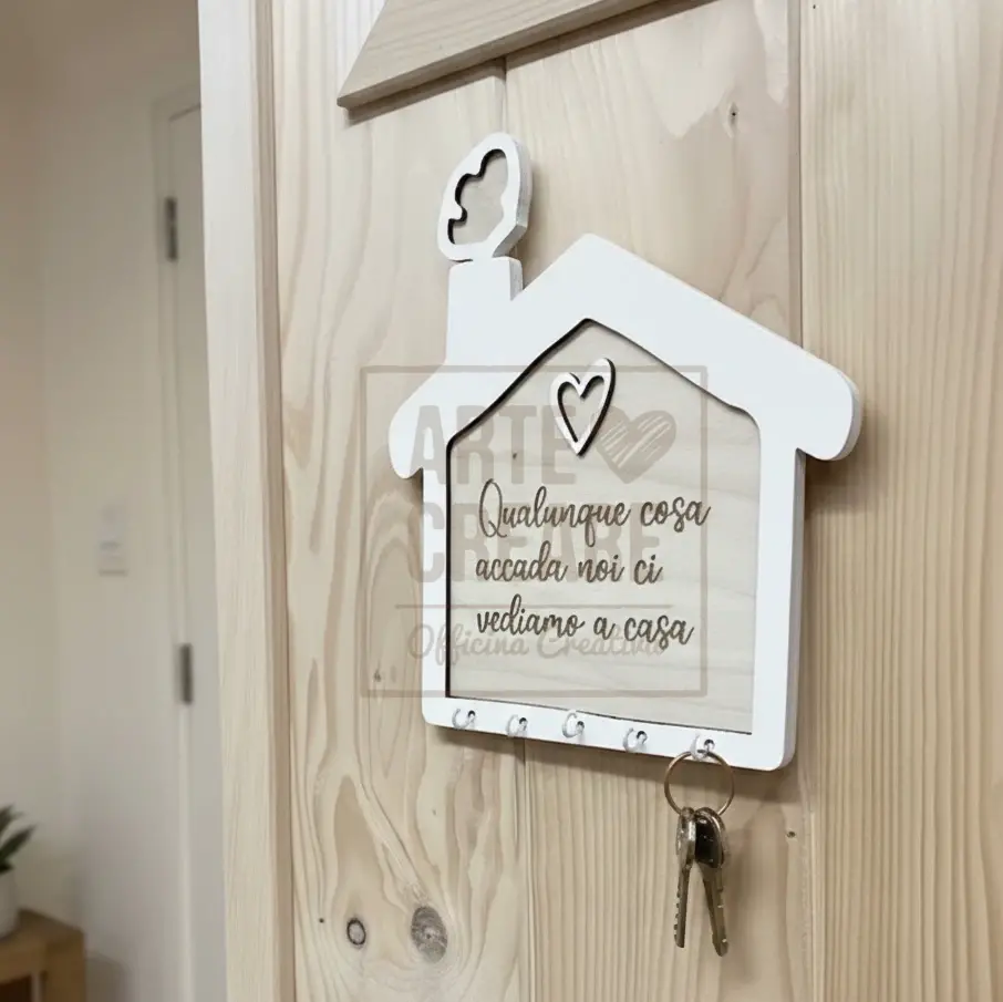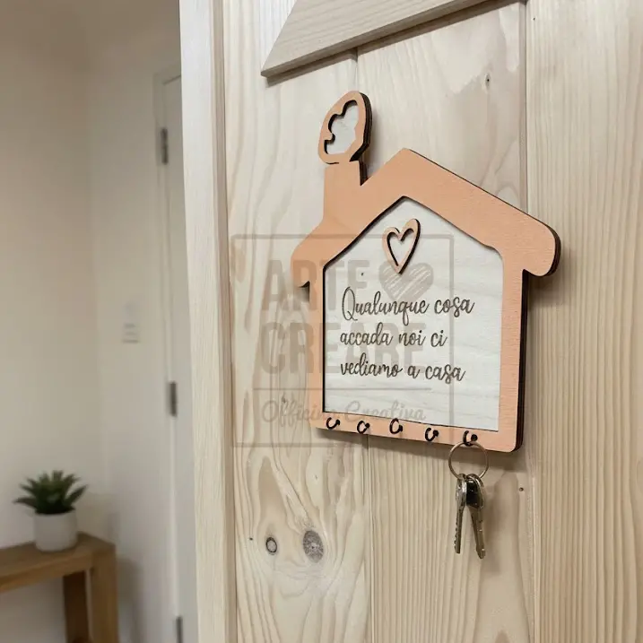 Realizzato in legno naturale e impreziosito da finiture colorate, questo appendichiavi si distingue per la sua combinazione di praticità e design divertente. È perfetto per l’ingresso di casa, la cucina o il corridoio e dona una nota di personalità ad ogni ambiente.