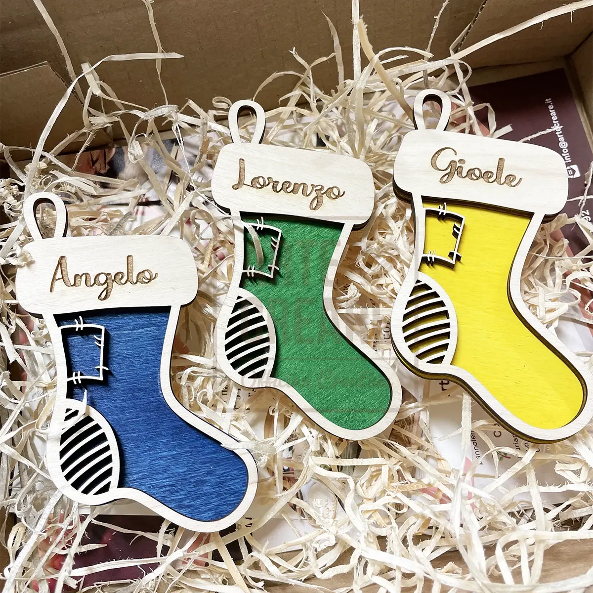 Aggiungi un tocco magico e personale al tuo Natale con questo set di calze della Befana personalizzate da appendere. Ogni calza, alta 10 cm, è perfetta come decorazione per l’albero di Natale, il caminetto, o qualsiasi angolo della tua casa che desideri rendere ancora più speciale durante le festività.