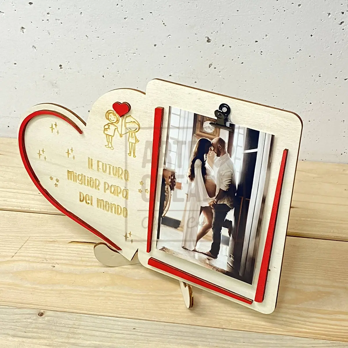 Realizzata in legno naturale e decorata con una frase romantica e motivante, è perfetta per accogliere la prima foto del pancione o un ricordo speciale legato alla famiglia.