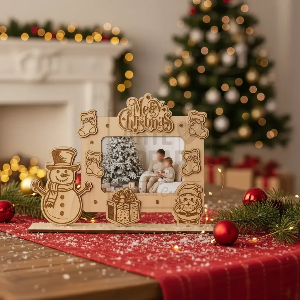 Incornicia i Momenti Speciali del Natale con la Cornice Portafoto Merry Christmas in Legno – Un’ Elegante Aggiunta alla Tua Decorazione Natalizia