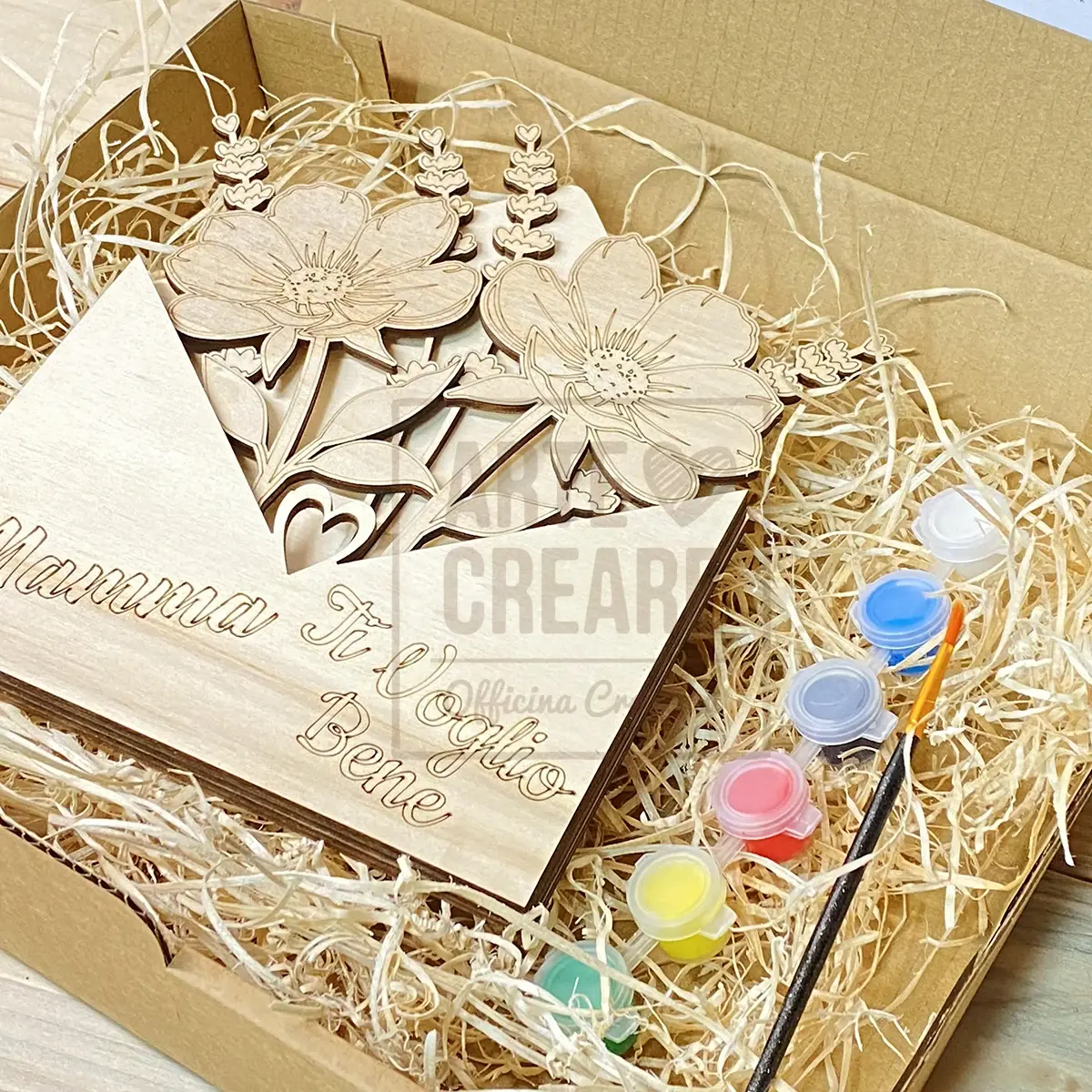 Kit Ti voglio bene Mamma da colorare per bambini – busta di fiori.