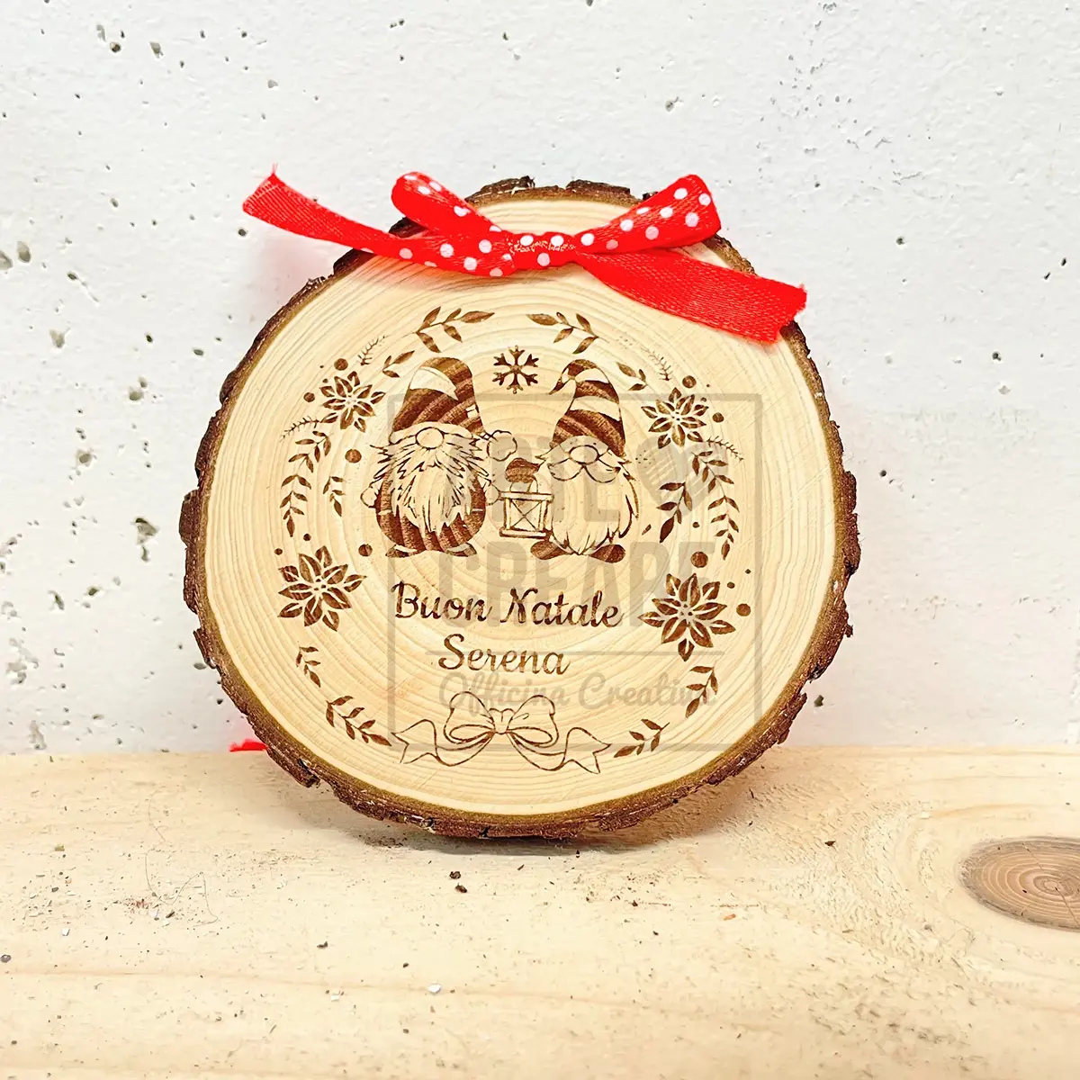 Tronchetto Natalizio in legno con corteccia da appendere – Ø 8 cm.