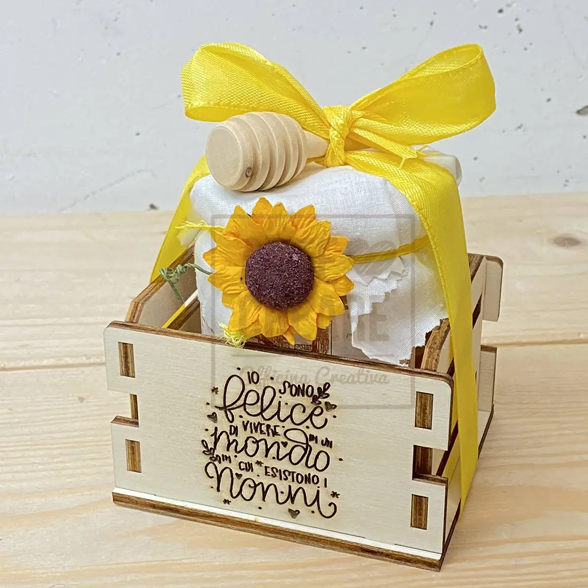 Vasetto di miele con cassettina in legno per i nonni – 120 / 250 gr